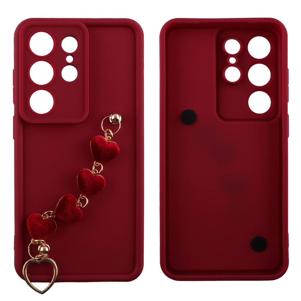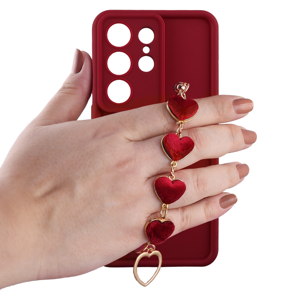 VOLTE-TEL ΘΗΚΗ SAMSUNG S26 ULTRA 5G 6.9" SILICON TPU WITH STRAP FULL CAMERA PROTECTION BURGUNDY WITH RED HEARTS