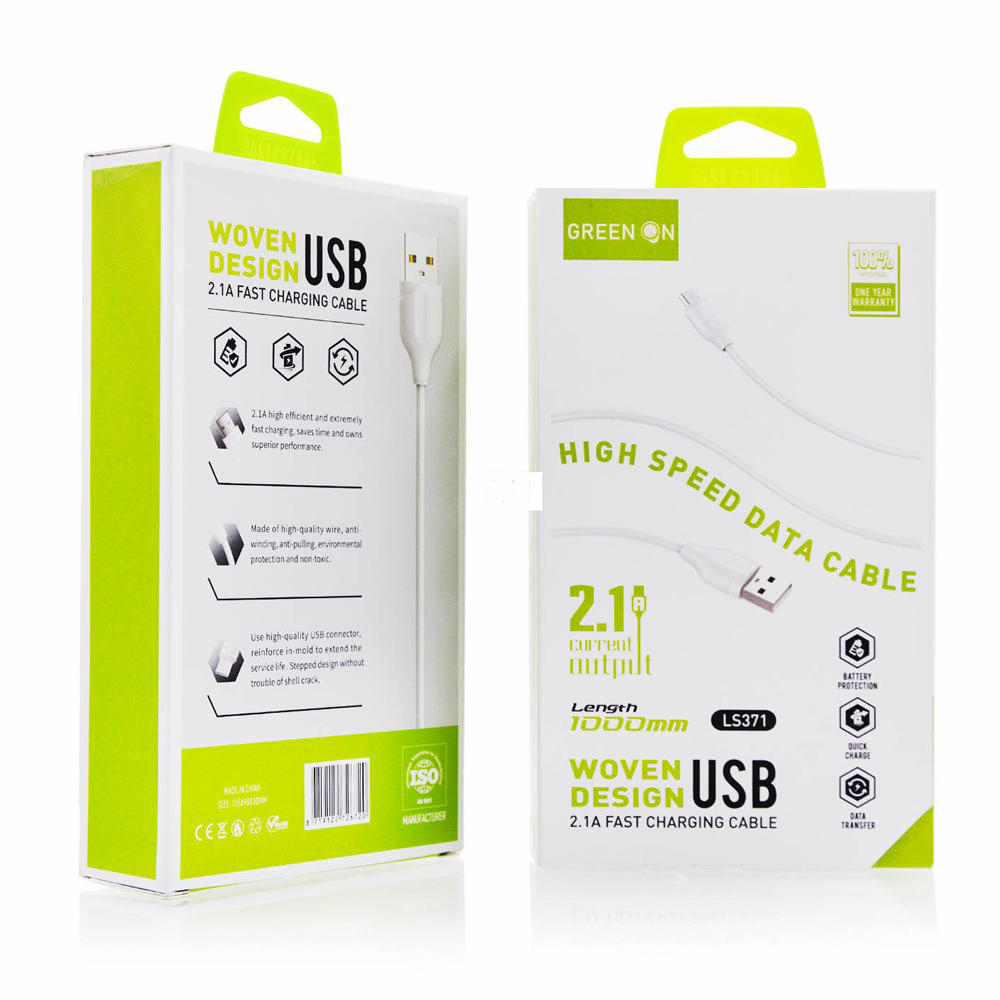 GREEN ON ΚΑΛΩΔΙΟ ΦΟΡΤΙΣΗΣ - MICRO USB FAST CHARGING 2.1A 1m LS731 WHITE
