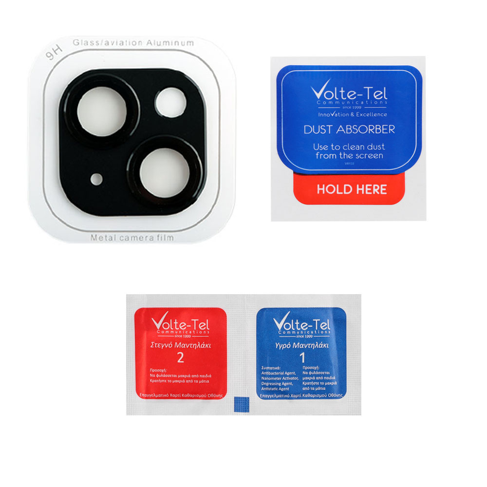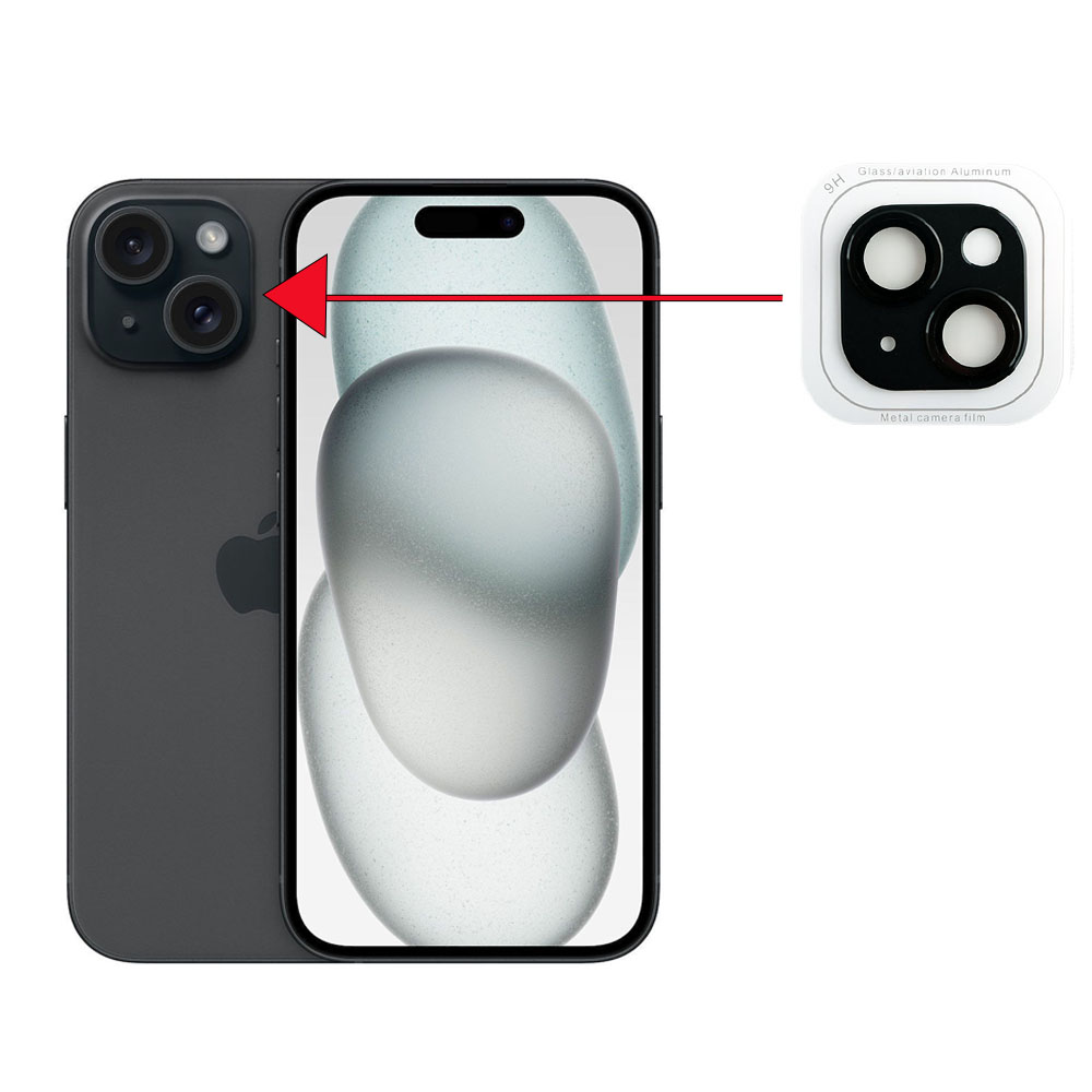 CAMERA GLASS COVER IPHONE 15 6.1" / IPHONE 15 PLUS 6.7" 9H 0.30MM 3D AR ALUMINIUM-ELECTROPLATING FRAME BLACK