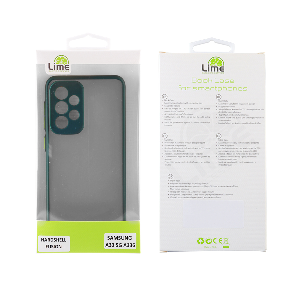 LIME ΘΗΚΗ SAMSUNG A33 5G A336 6.4" HARDSHELL FUSION FULL CAMERA PROTECTION GREEN WITH YELLOW KEYS