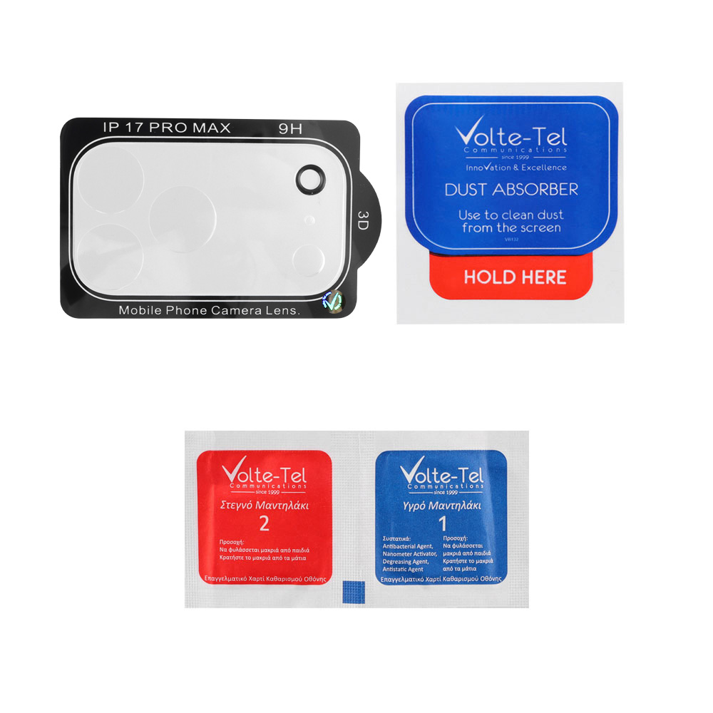 VOLTE-TEL TEMPERED GLASS IPHONE 17 PRO MAX 6.9" 9H 0.25mm 3D CURVED FOR CAMERA TRANSPARENT