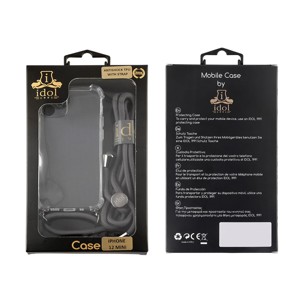 ΘΗΚΗ IPHONE 12 MINI 5.4" ANTISHOCK TPU WITH STRAP FULL CAMERA PROTECTION ΔΙΑΦΑΝΗ