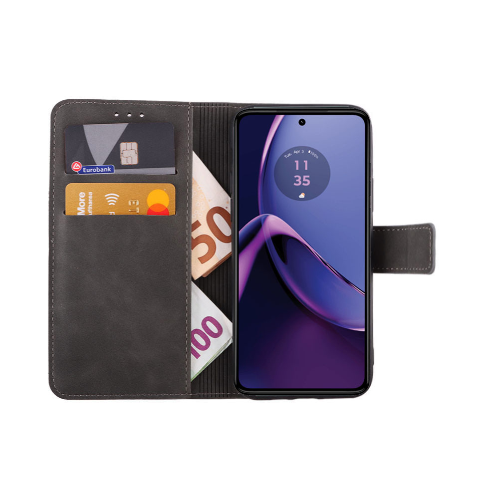 ΘΗΚΗ MOTOROLA MOTO G84 5G 6.5" ESSENTIAL MAGNET BOOK STAND CLIP GREY