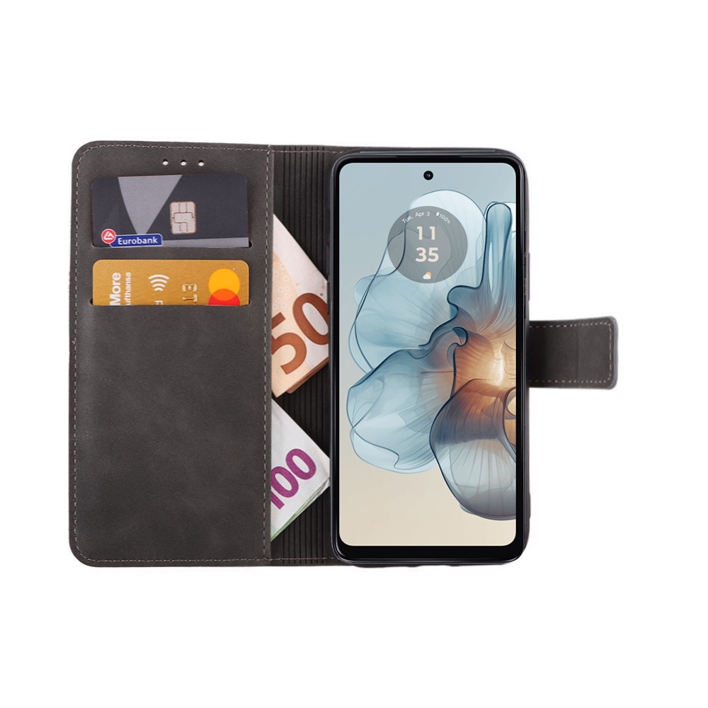 ΘΗΚΗ MOTOROLA MOTO G24 POWER XT2425-4 6,56" ESSENTIAL MAGNET BOOK STAND CLIP GREY