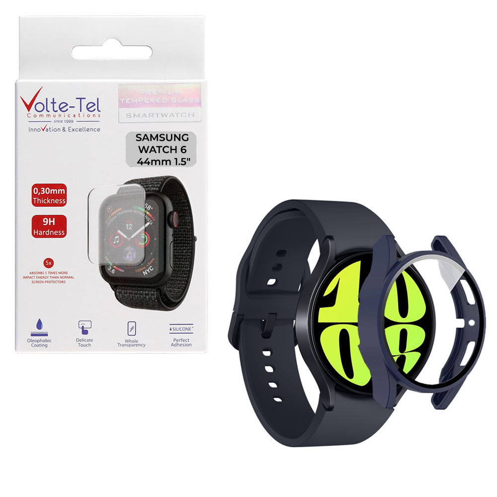 TEMPERED GLASS SAMSUNG WATCH 6 44mm 1.5" 9H 0.30mm PC EDGE COVER WITH KEY 3D FULL GLUE FULL COVER BLUE