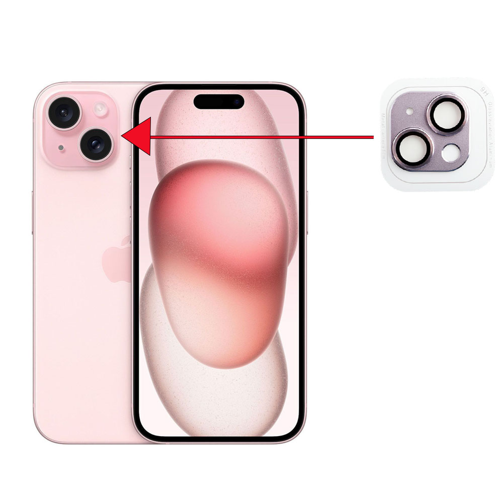 CAMERA GLASS COVER IPHONE 15 6.1" / IPHONE 15 PLUS 6.7" 9H 0.30MM 3D AR ALUMINIUM-ELECTROPLATING FRAME PINK