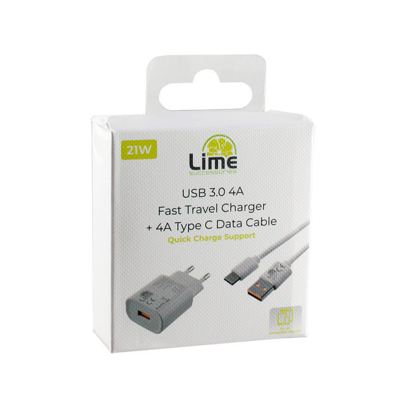 Τώρα μπορείτε να φορτίσετε το κινητό σας γρηγορότερα και πάντα με ασφάλεια με το νέο πιο γρήγορο φορτιστή FAST TRAVEL CHARGER QC 3.0 LTU24 21W 4000mA + ΚΑΛΩΔΙΟ ΦΟΡΤΙΣΗΣ DATA L14 4000mA TYPE C από την LIME SUCCESSORIES.