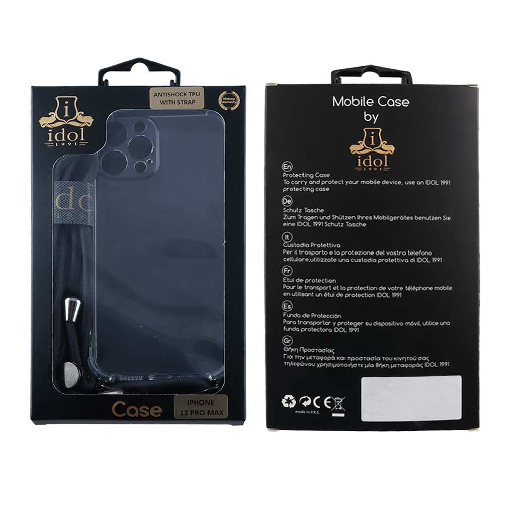 ΘΗΚΗ IPHONE 12 PRO MAX 6.7" ANTISHOCK TPU WITH STRAP FULL CAMERA PROTECTION ΔΙΑΦΑΝΗ