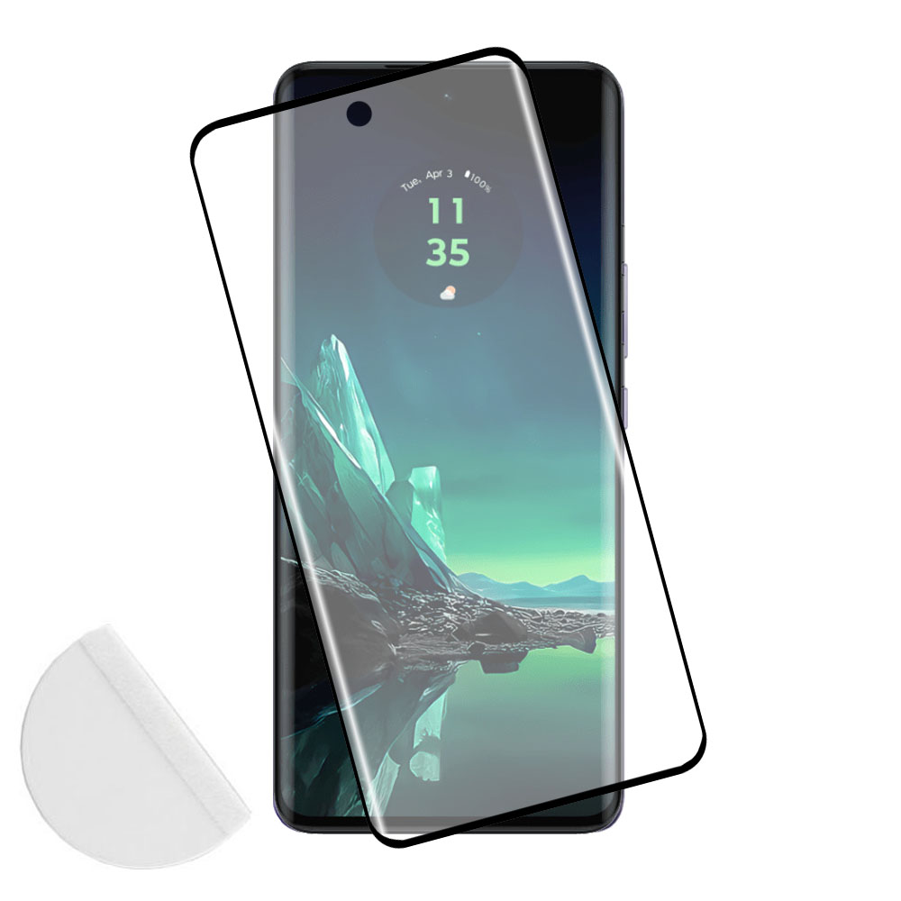TEMPERED GLASS MOTOROLA EDGE 40 NEO 6.55" 9H 0.30mm 3D FULL GLUE SEMI CURVED FINGER UNLOCK BLACK + SQUEEZY CARD