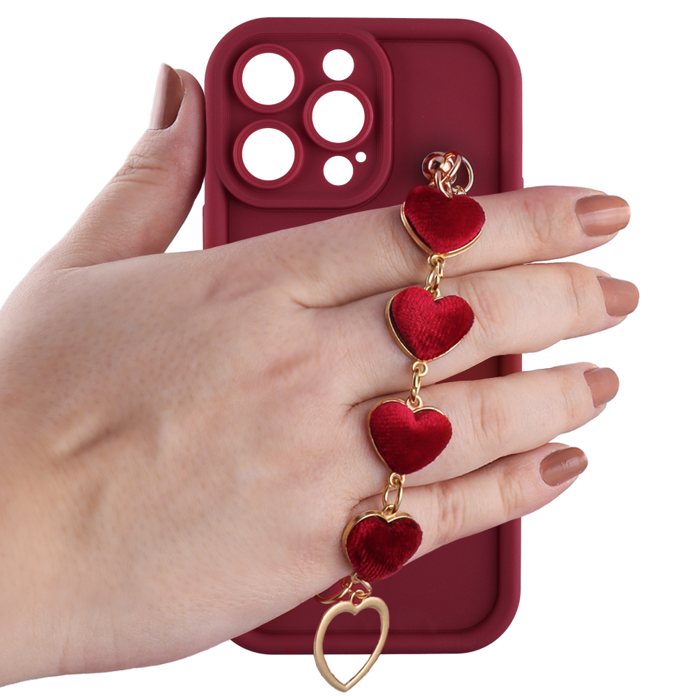 VOLTE-TEL ΘΗΚΗ IPHONE 15 PRO MAX 6.7" SILICON TPU WITH STRAP FULL CAMERA PROTECTION BURGUNDY WITH RED HEARTS