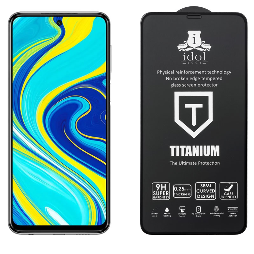 TEMPERED GLASS XIAOMI REDMI NOTE 9S 6.67" 9H 0.25mm TITANIUM SEMI CURVED FULL GLUE BLACK