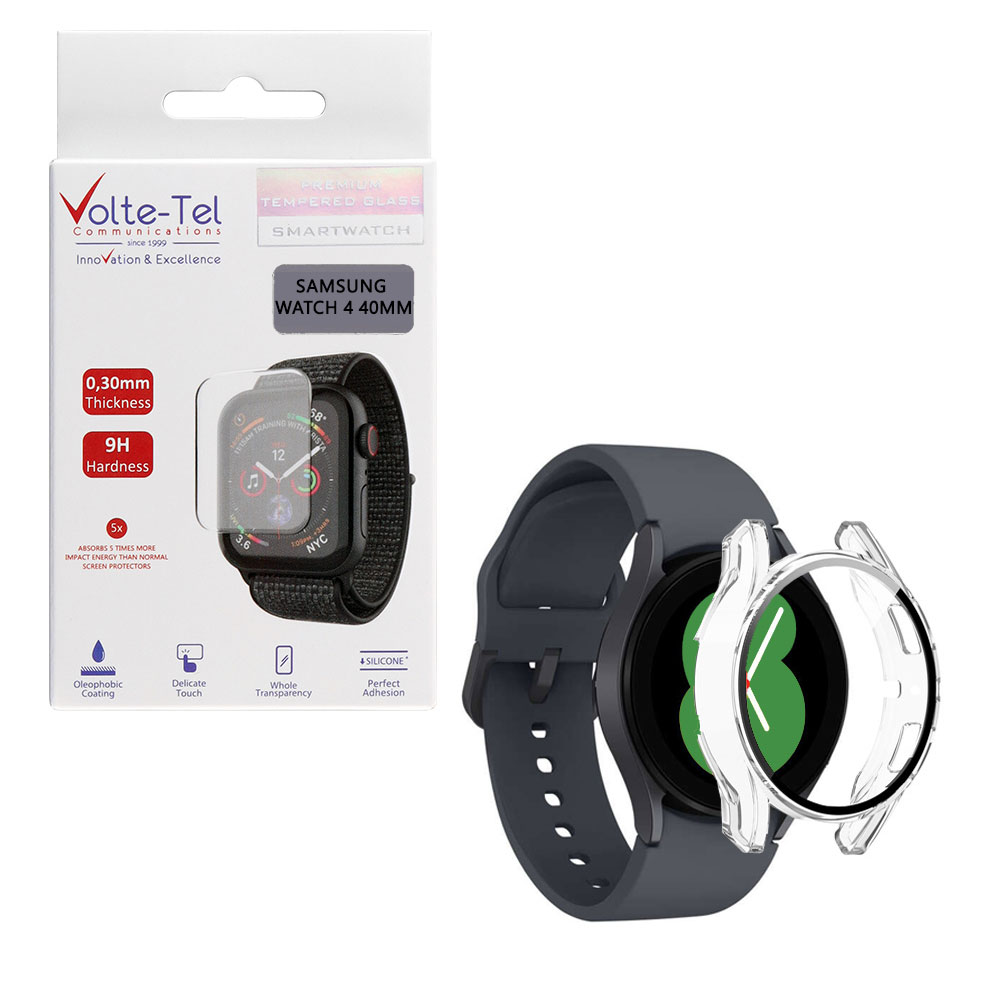 TEMPERED GLASS SAMSUNG WATCH 4 40mm 1.2" 9H 0.30mm PC EDGE COVER WITH KEY 3D FULL GLUE FULL COVER TRANSPARENT