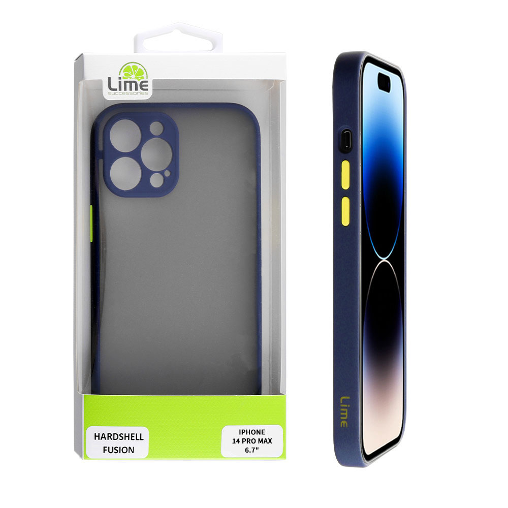 LIME ΘΗΚΗ IPHONE 14 PRO MAX 6.7" HARDSHELL FUSION FULL CAMERA PROTECTION BLUE WITH YELLOW KEYS