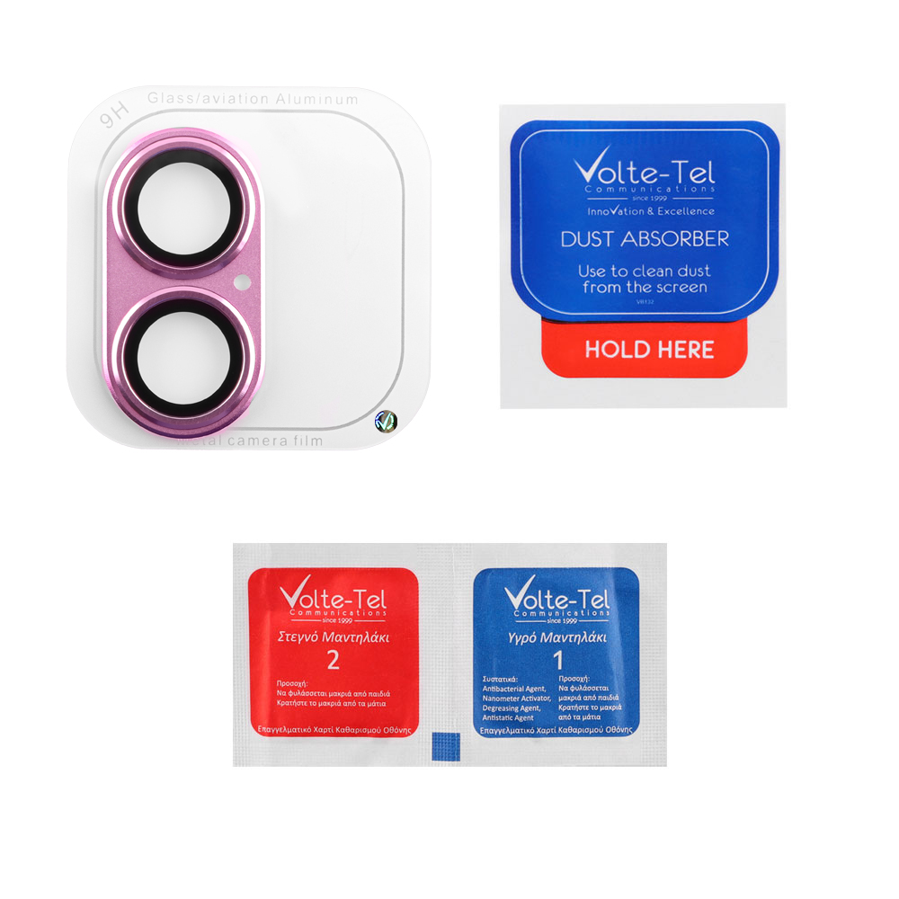 VOLTE-TEL CAMERA GLASS COVER IPHONE 16 6.3" / IPHONE 16 PLUS 6.9" 9H 0.30MM 3D AR ALUMINIUM-ELECTROPLATING FRAME PINK