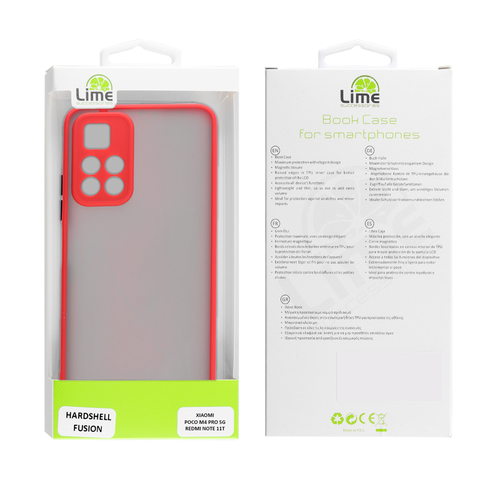 LIME ΘΗΚΗ XIAOMI POCO M4 PRO 5G / REDMI NOTE 11T 5G 6.6" HARDSHELL FUSION CAMERA GUARD RED WITH BLACK KEYS