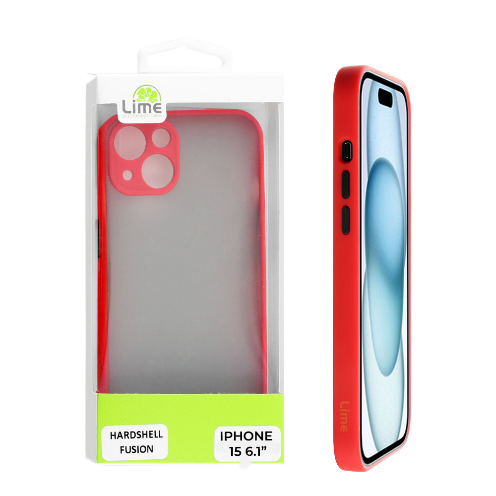 LIME ΘΗΚΗ IPHONE 15 6.1" HARDSHELL FUSION FULL CAMERA PROTECTION RED WITH BLACK KEYS