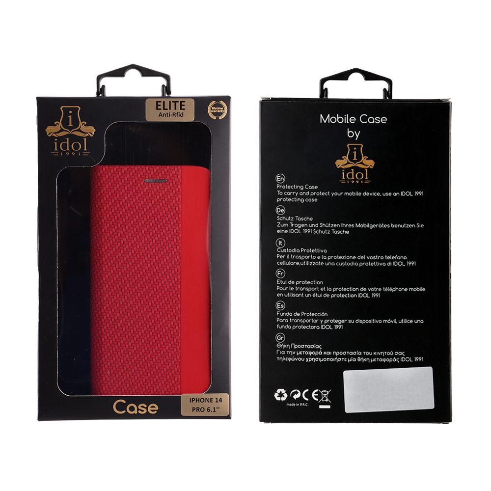 ΘΗΚΗ IPHONE 14 PRO 6.1" ELITE ANTI-RFID BOOK STAND RED