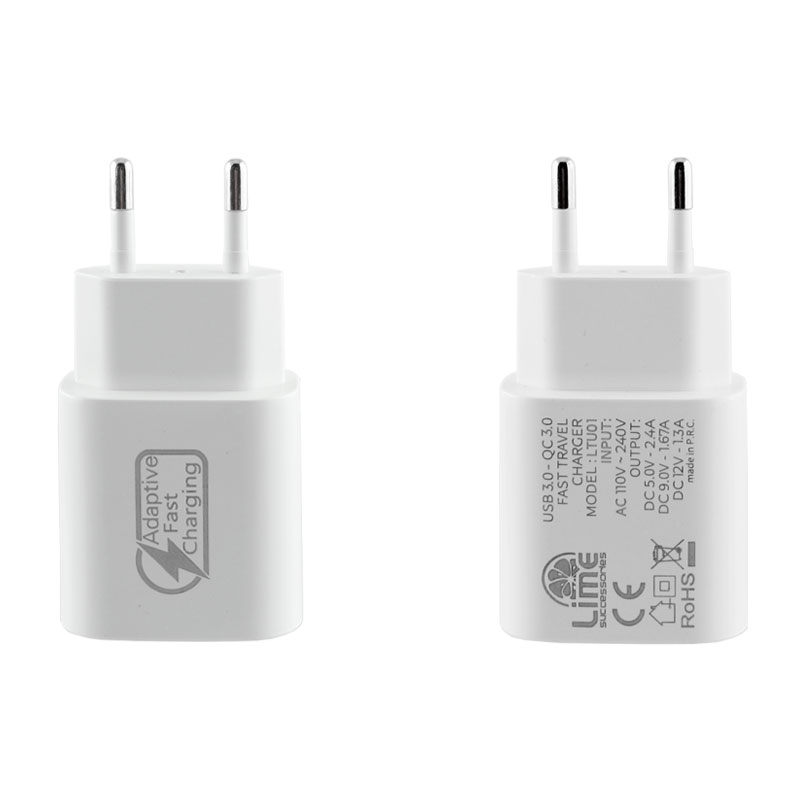 Τώρα μπορείτε να φορτίσετε το κινητό σας γρηγορότερα με το νέο φορτιστή FAST TRAVEL CHARGER QC 3.0 LTU01 2400mA από την LIME SUCCESSORIES. Ο νέος αυτός φορτιστής χρησιμοποιεί την τεχνολογία Quick Charge 3.0 και προσφέρει 4 φορές μεγαλύτερη ταχύτητα φόρτισης, σε σύγκριση με τους συμβατικούς ταχυφορτιστές. Χάρη σε αυτόν θα είστε σε θέση να φορτίσετε ταχύτατα την μπαταρία του αγαπημένο σας Smartphone από το 0% σε 80% σε μόλις 45 λεπτά, ενώ είναι παράλληλα συμβατός και με τις τεχνολογίες Quick Charge 2.0/Quick Charge/Adaptive Fast Charging (Samsung)/SuperCharge (Huawei) και φυσικά Fast Charging για το 80% των μοντέλων της αγοράς. Επιπλέον διαθέτει εξελιγμένο κύκλωμα με πολλαπλά επίπεδα ασφάλειας για να μπορείτε να φορτίζετε χωρίς να έχετε άγχος για την ασφάλεια των συσκευών σας. Τέλος αξίζει να σημειωθεί ότι μπορείτε να τον χρησιμοποιήσετε και ως έναν συμβατικό φορτιστή για να φορτίζετε το αγαπημένο σας Smartphone ή Tablet.