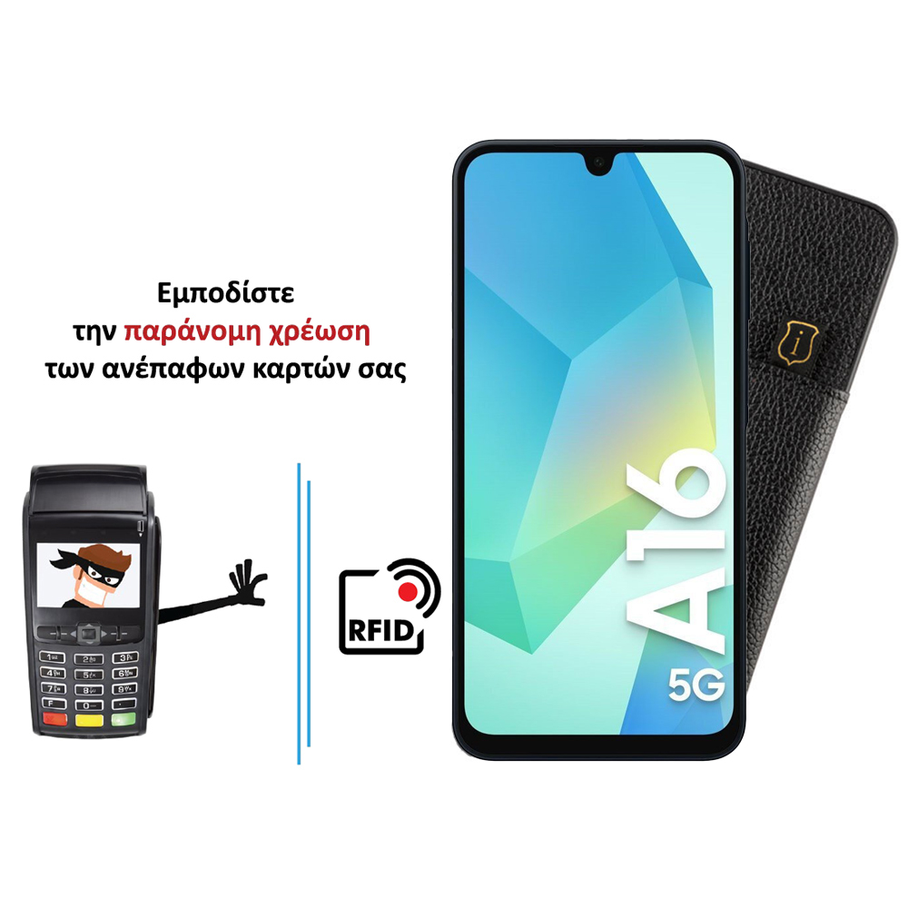 IDOL 1991 ΘΗΚΗ SAMSUNG A16 4G A165 / A16 5G A166 6.7" ANTI-RFID LEATHER SMART WALLET CAMERA GUARD BLACK