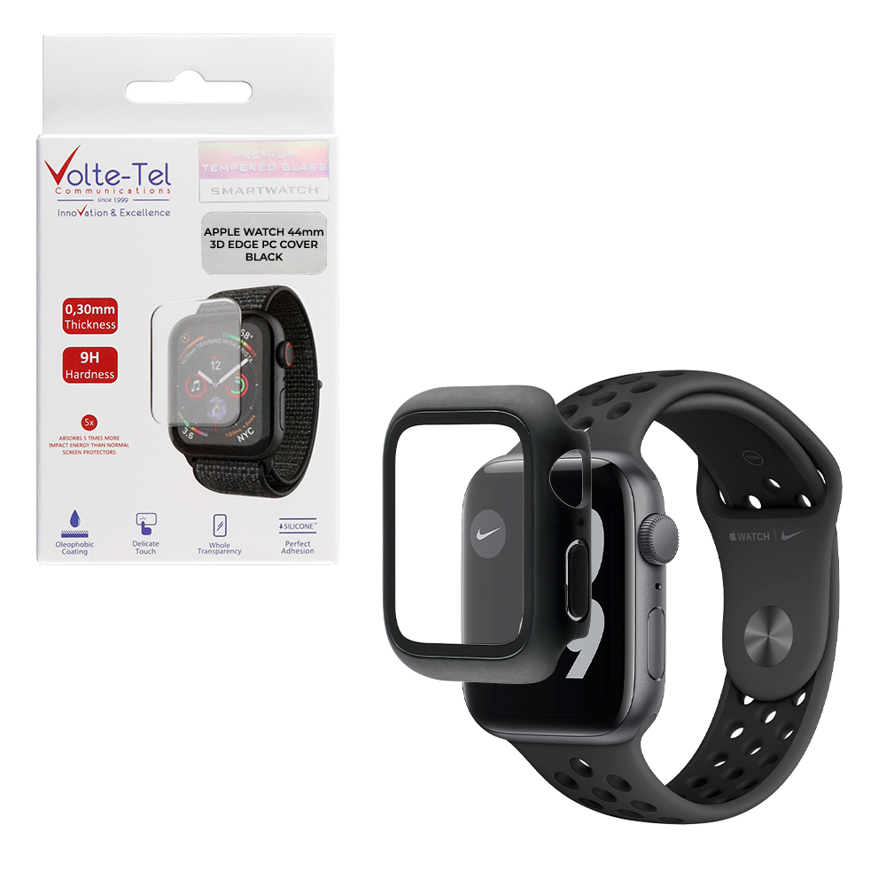 TEMPERED GLASS APPLE WATCH 44mm 1.78" 9H 0.30mm PC EDGE COVER WITH KEY 3D FULL GLUE FULL COVER BLACK