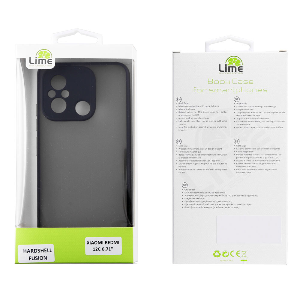 LIME ΘΗΚΗ XIAOMI REDMI 12C 6.71" HARDSHELL FUSION FULL CAMERA PROTECTION BLACK WITH RED KEYS
