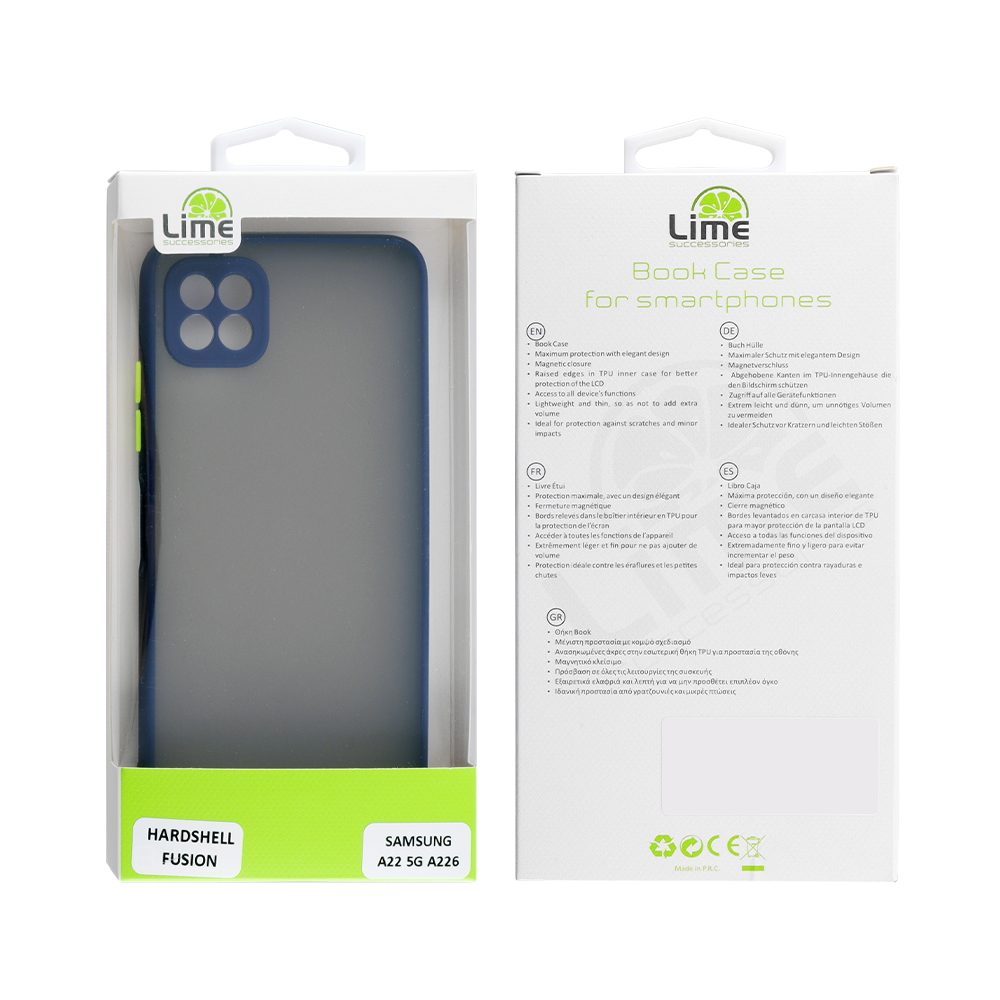 LIME ΘΗΚΗ SAMSUNG A22 5G A226 6.6" HARDSELL FUSION CAMERA GUARD BLUE WITH YELLOW KEYS