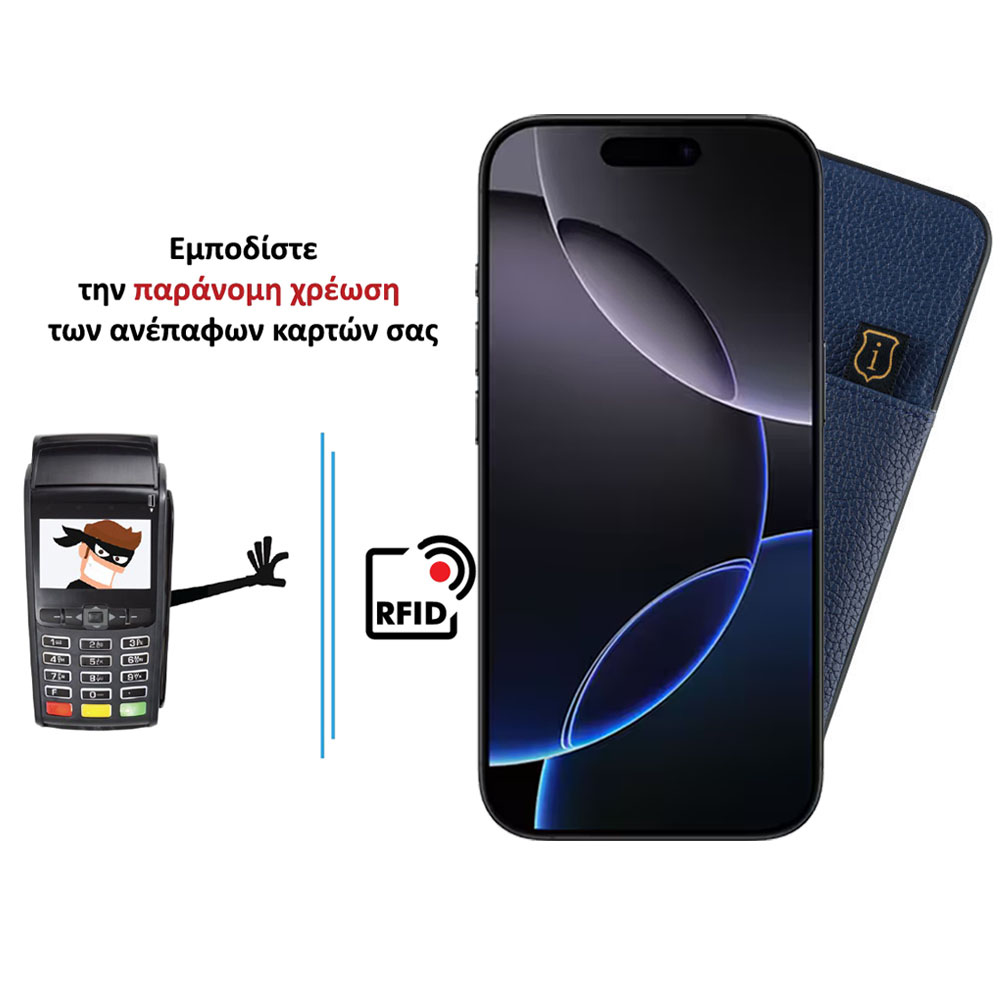 IDOL 1991 ΘΗΚΗ IPHONE 16 PRO 6.3" ANTI-RFID LEATHER SMART WALLET BLUE