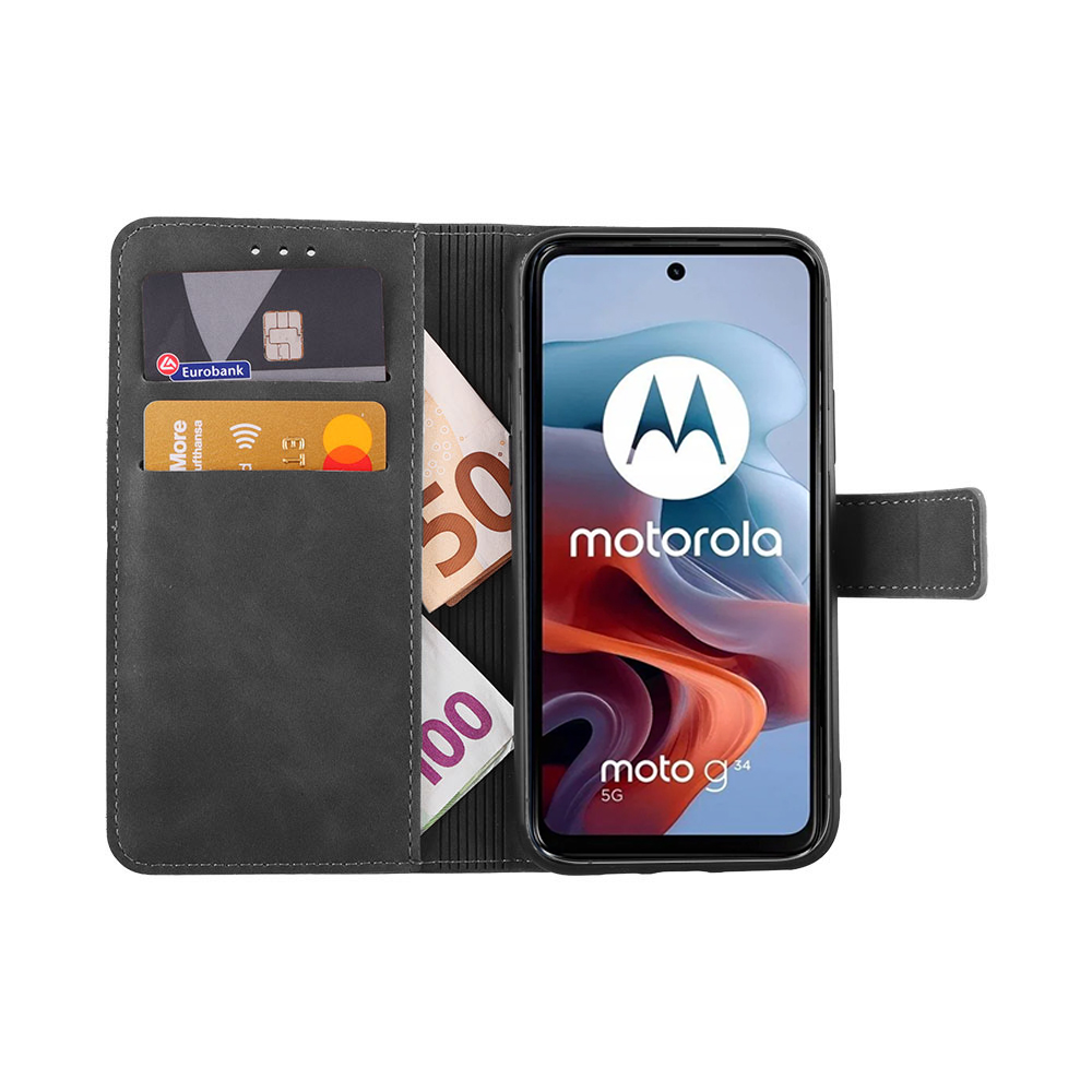 LIME ΘΗΚΗ MOTOROLA MOTO G34 5G XT2363-3 6.5" ESSENTIAL MAGNET BOOK STAND CLIP GREY