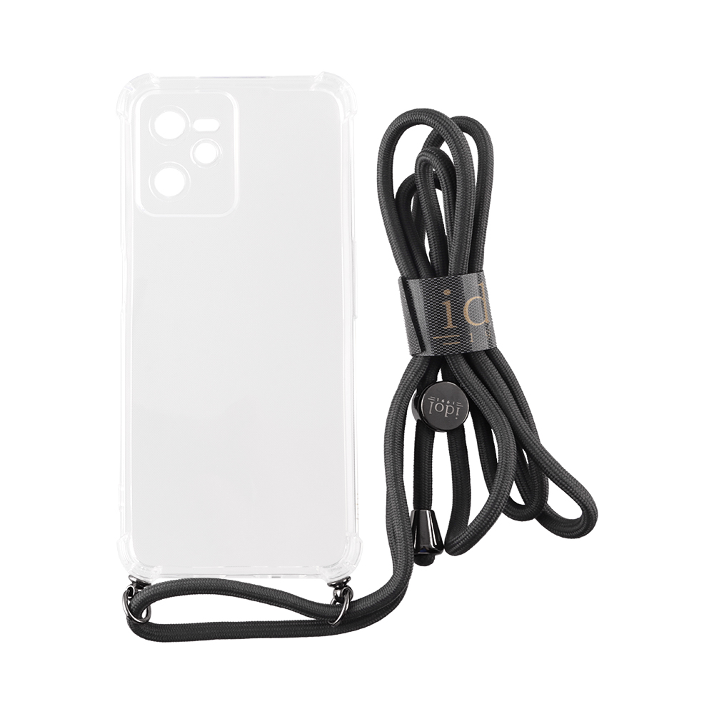 Πρόκειται για ένα κομψό κορδόνι το οποίο καταλήγει σε μια αποσπώμενη διάφανη ANTISHOCK AIR TPU θήκημε βίδες, στην οποία έχει προστεθεί περισσότερο υλικό TPU στις γωνίες της θήκης το οποίο έχει κενό εσωτερικά και λειτουργεί σαν αερόσακος απορροφώντας τους κραδασμούς σε μια πιθανή πτώση.