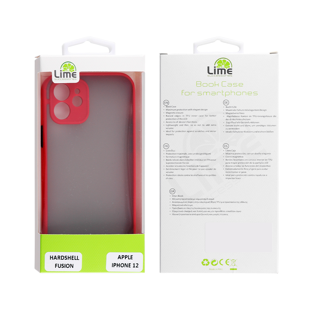 LIME ΘΗΚΗ IPHONE 12 6.1" HARDSELL FUSION CAMERA GUARD RED WITH BLACK KEYS