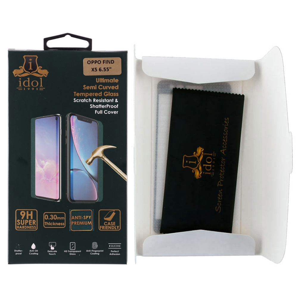 TEMPERED GLASS OPPO FIND X5 6.55" 9H 0.25mm 3D FULL GLUE SEMI CURVED FINGER UNLOCK BLACK + SQUEEZY CARD
