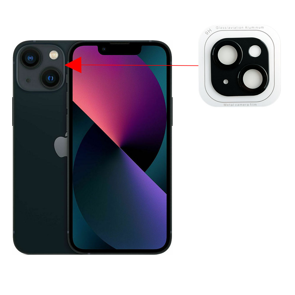 CAMERA GLASS COVER IPHONE 13 MINI 5.4" / IPHONE 13 6.1" 9H 0.30MM 3D ALUMINIUM-ELECTROPLATING FRAME BLACK