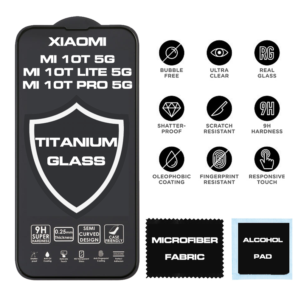 TITANIUM TEMPERED GLASS XIAOMI MI 10T 5G / MI 10T LITE 5G / MI 10T PRO 5G 6.67" 9H 0.25mm FULL FACE FULL GLUE SEMI CURVED BLACK