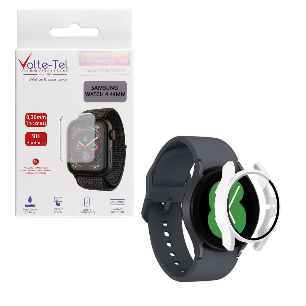 TEMPERED GLASS SAMSUNG WATCH 4 44mm 1.4" 9H 0.30mm PC EDGE COVER WITH KEY 3D FULL GLUE FULL COVER WHITE