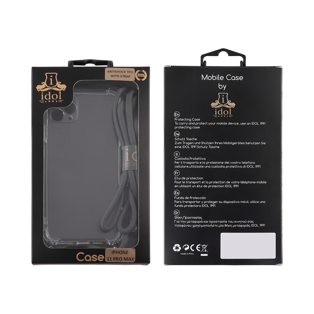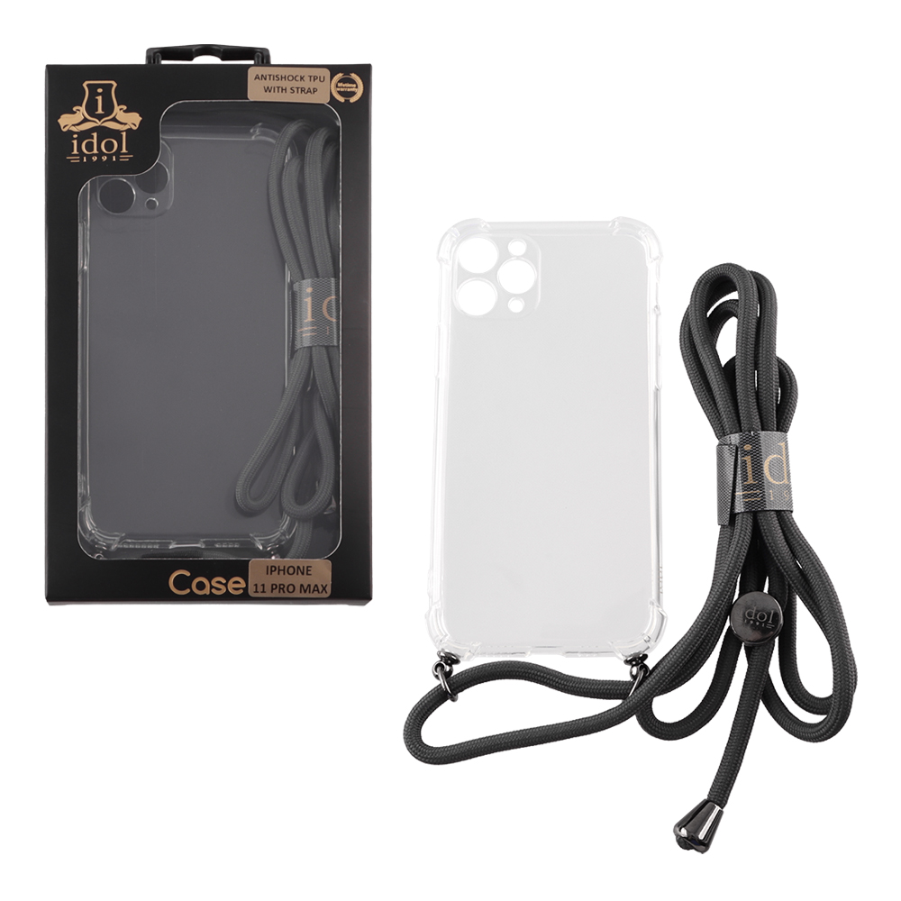 ΘΗΚΗ IPHONE 11 PRO MAX 6.5" ANTISHOCK TPU WITH STRAP FULL CAMERA PROTECTION ΔΙΑΦΑΝΗ