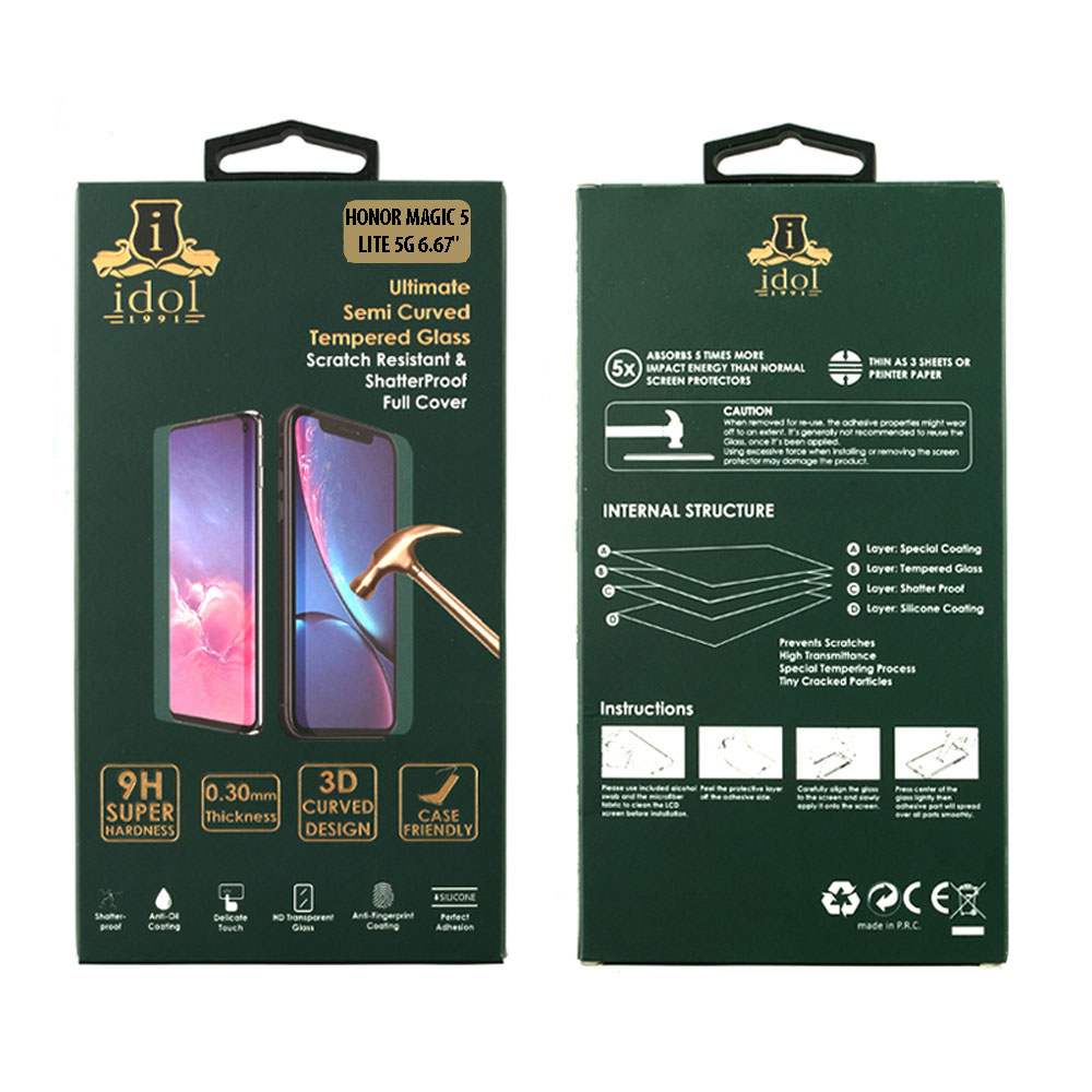 TEMPERED GLASS HONOR MAGIC 5 LITE 5G 6.67" 9H 0.30mm 3D FULL GLUE SEMI CURVED FINGER UNLOCK BLACK + SQUEEZY CARD