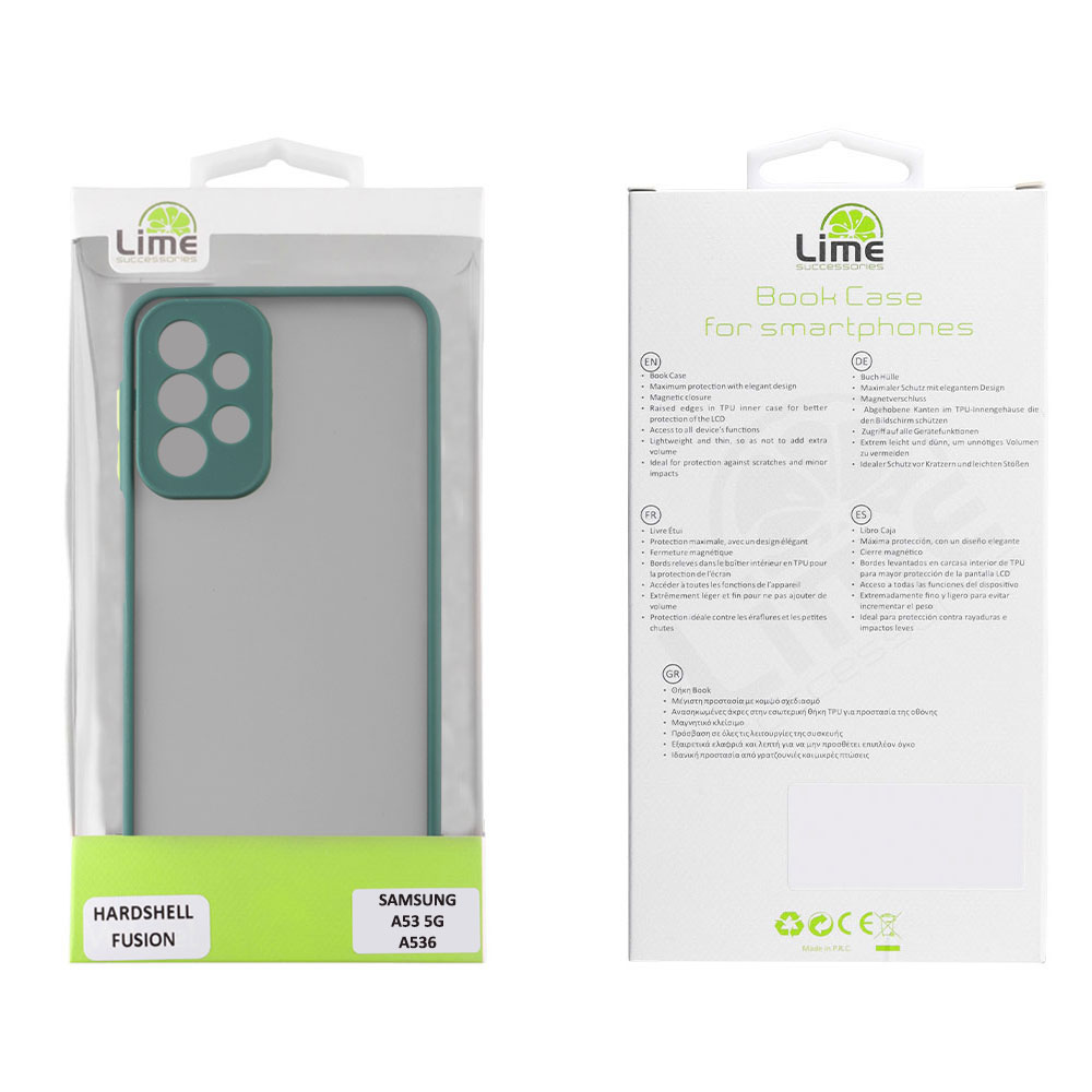 LIME ΘΗΚΗ SAMSUNG A53 5G A536 6.5" HARDSHELL FUSION FULL CAMERA PROTECTION GREEN WITH YELLOW KEYS