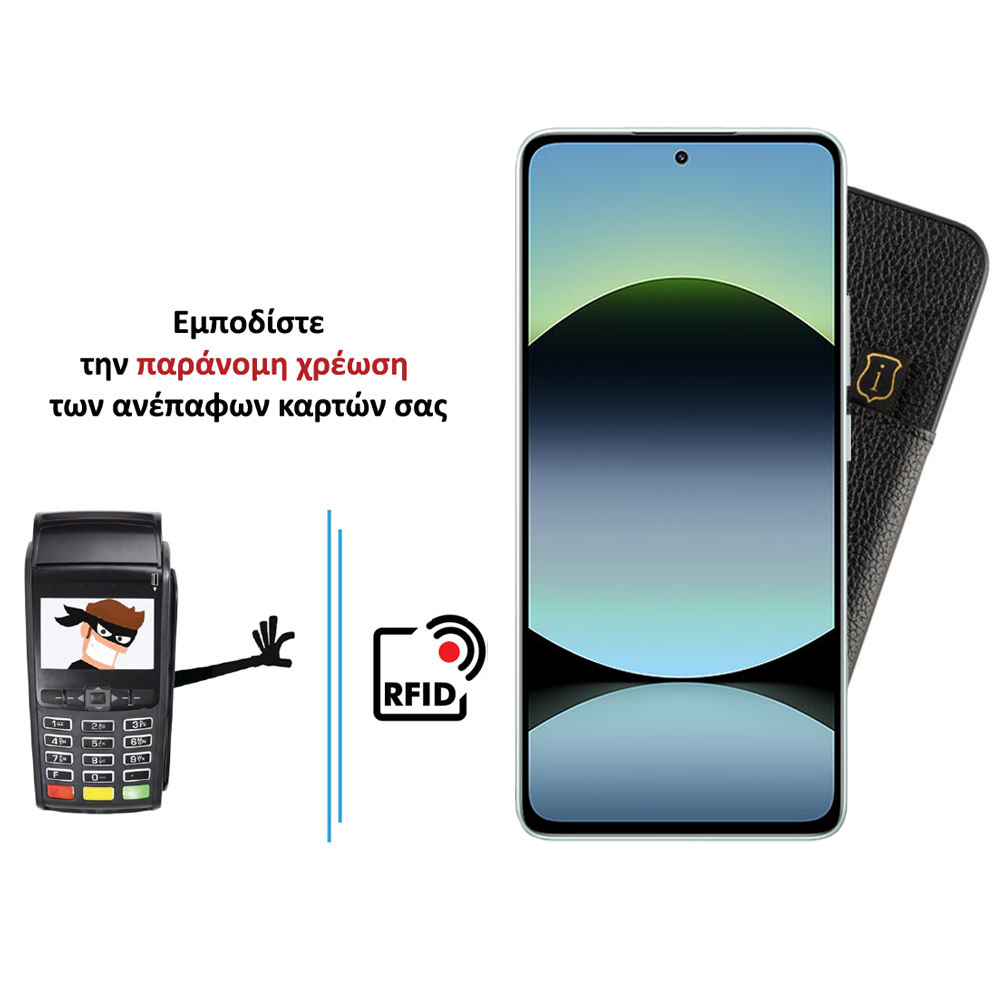 IDOL 1991 ΘΗΚΗ XIAOMI REDMI NOTE 14 5G 6.67" ANTI-RFID LEATHER SMART WALLET CAMERA GUARD BLACK