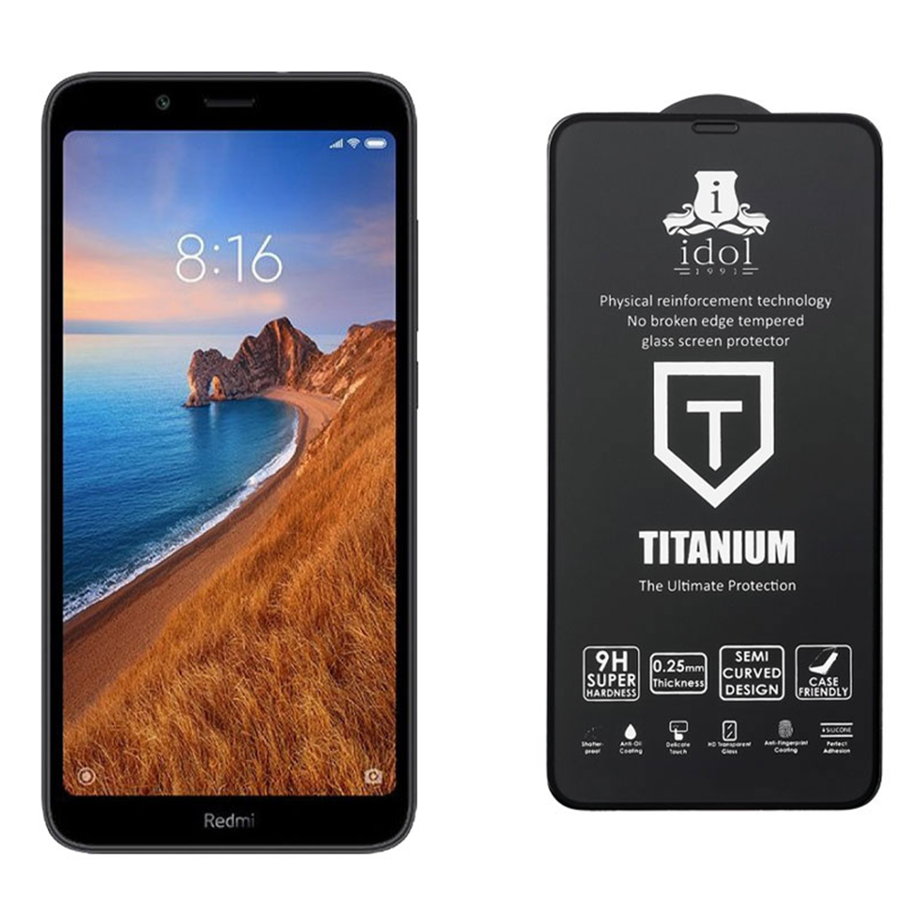 TEMPERED GLASS XIAOMI REDMI 7A 5.45" 9H 0.25mm TITANIUM SEMI CURVED FULL GLUE BLACK