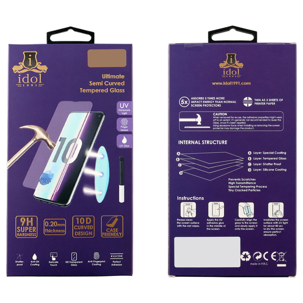 Αποκτήστε το νέο επαναστατικό προστατευτικό οθόνης UV GLASS 10D SEMI από την IDOL 1991, που θα εντυπωσιάσει ακόμα και τους πιο απαιτητικούς χρήστες. Χρησιμοποιώντας την τεχνολογία Liquid Dispersion, η κόλλα συγκόλλησης της IDOL 1991 απλώνει και διασκορπίζεται ομοιόμορφα επάνω στην οθόνη του κινητού, συμπεριλαμβανομένων τυχόν γρατζουνιών ή αποχρωματισμών, δημιουργώντας έτσι μια σκληρή και ανθεκτική επίστρωση από άκρη σε άκρη και ταυτόχρονα επιδιορθώνοντας προηγούμενες γρατζουνιές ή ατέλειες. Το σκληρό και ανθεκτικό UV 10D Tempered Glass της IDOL 1991 χρησιμοποιεί μαζί με την νέα μέθοδο εγκατάστασης με την ειδική κόλλα και τη χρήση υπεριώδους ακτινοβολίας UV για συνολική και άψογη εφαρμογή στην οθόνη της συσκευής σας.