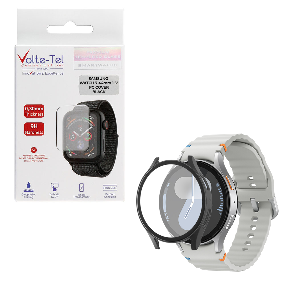 TEMPERED GLASS SAMSUNG WATCH 7 44mm 1.5" 9H 0.30mm PC EDGE COVER WITH KEY 3D FULL GLUE FULL COVER BLACK