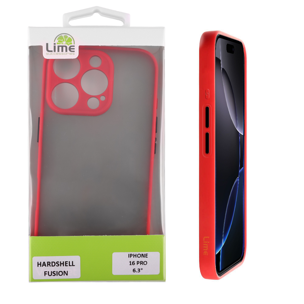 LIME ΘΗΚΗ IPHONE 16 PRO 6.3" HARDSHELL FUSION FULL CAMERA PROTECTION RED WITH BLACK KEYS