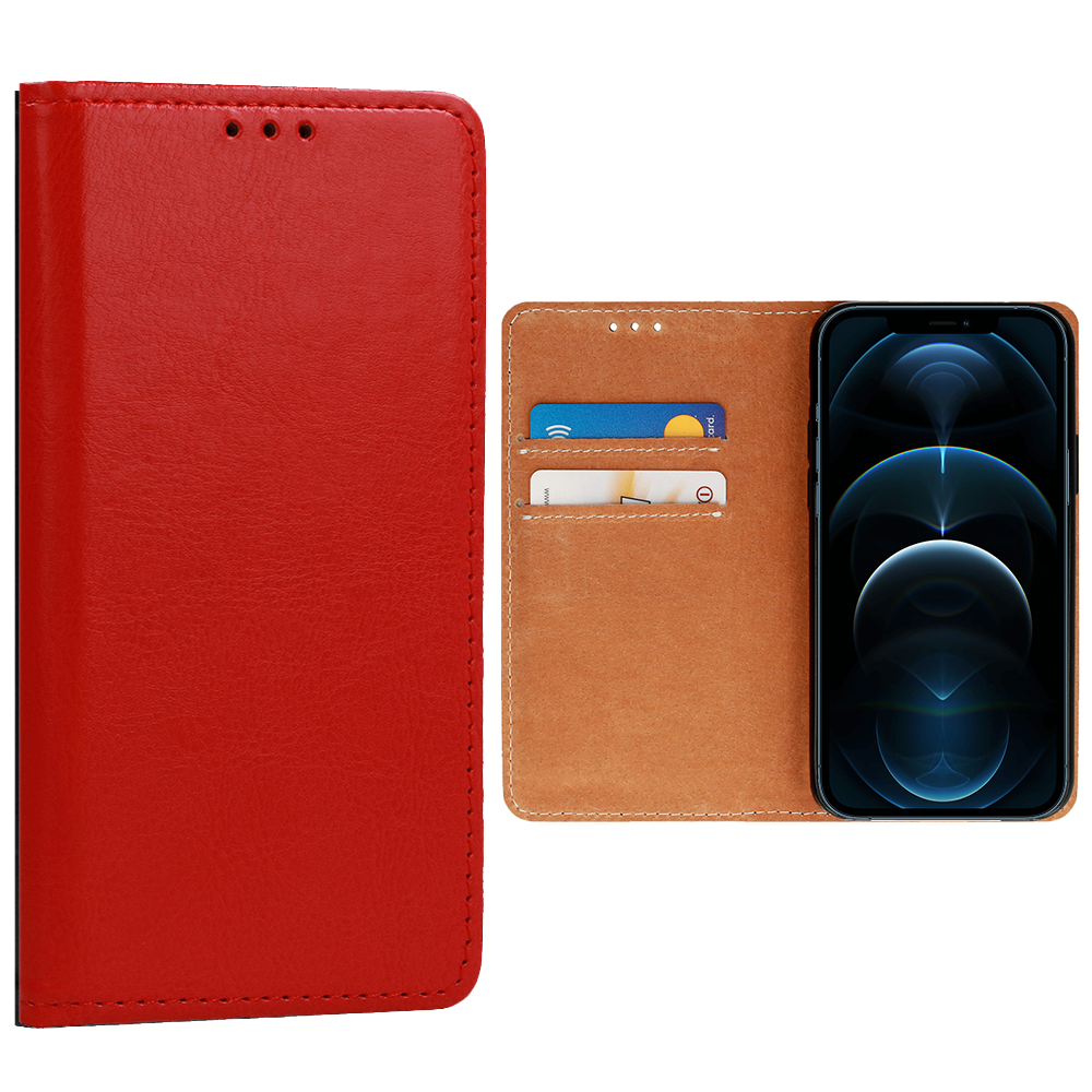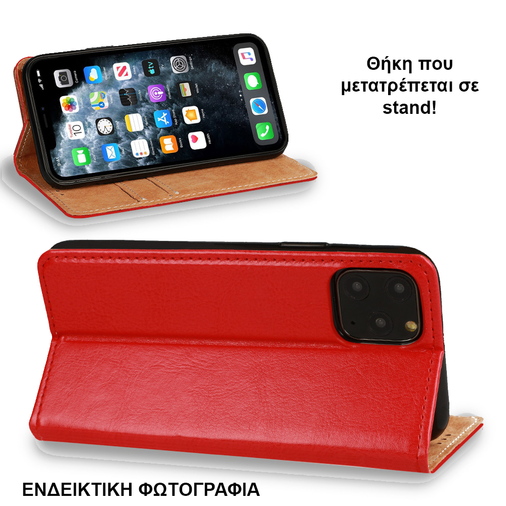ΘΗΚΗ IPHONE 12 PRO MAX 6.7" ITALIAN LEATHER MAGNET BOOK STAND RED