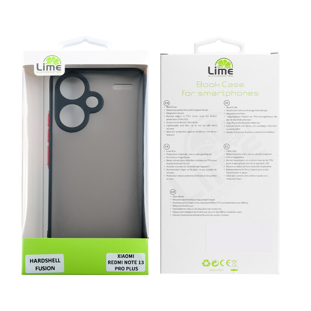 LIME ΘΗΚΗ XIAOMI REDMI NOTE 13 PRO+ PLUS 5G 6.67" HARDSHELL FUSION FULL CAMERA PROTECTION BLACK WITH RED KEYS