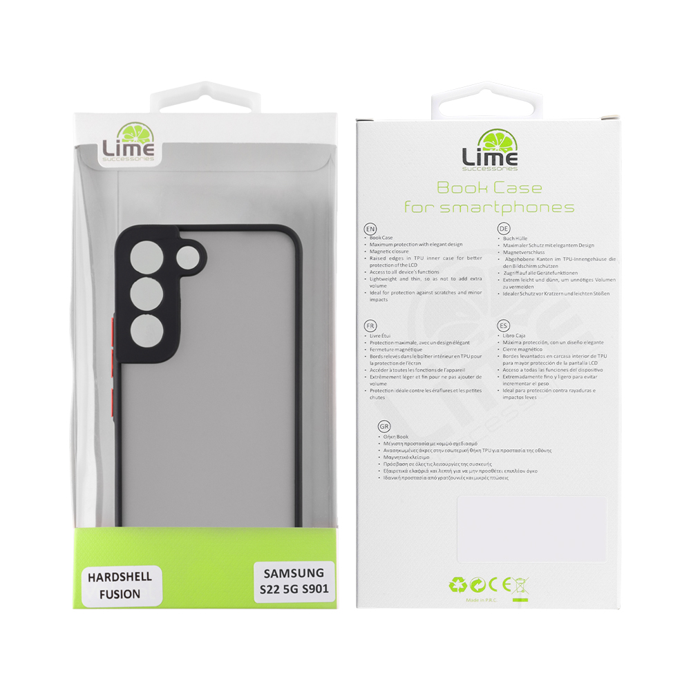 LIME ΘΗΚΗ SAMSUNG S22 5G S901 6.1" HARDSHELL FUSION FULL CAMERA PROTECTION BLACK WITH RED KEYS