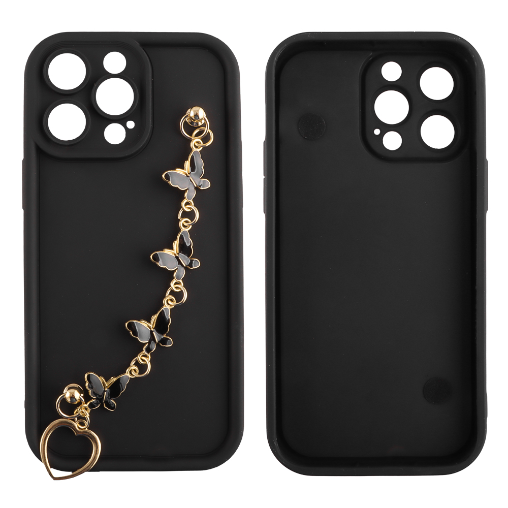 VOLTE-TEL ΘΗΚΗ IPHONE 14 PRO MAX 6.7" SILICON TPU WITH STRAP FULL CAMERA PROTECTION BLACK WITH BLACK BUTTERFLIES