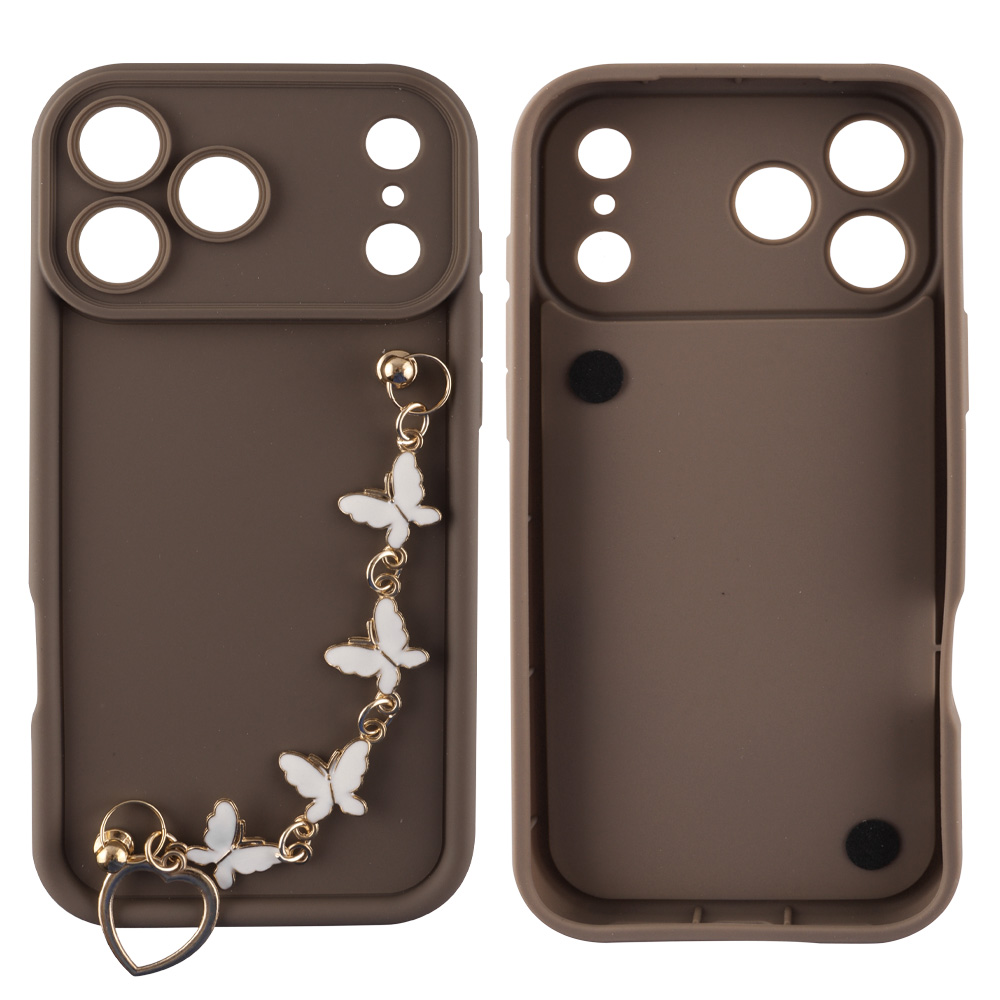 VOLTE-TEL ΘΗΚΗ IPHONE 17 PRO 6.3" SILICON TPU WITH STRAP FULL CAMERA PROTECTION BROWN WITH WHITE BUTTERFLIES
