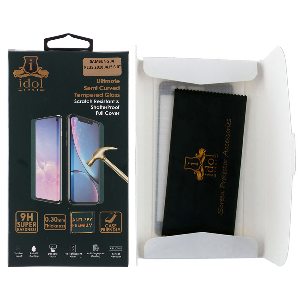TEMPERED GLASS SAMSUNG J4+ PLUS 2018 J415 6.0" 9H 0.25mm 20D FULL GLUE SEMI CURVED BLACK