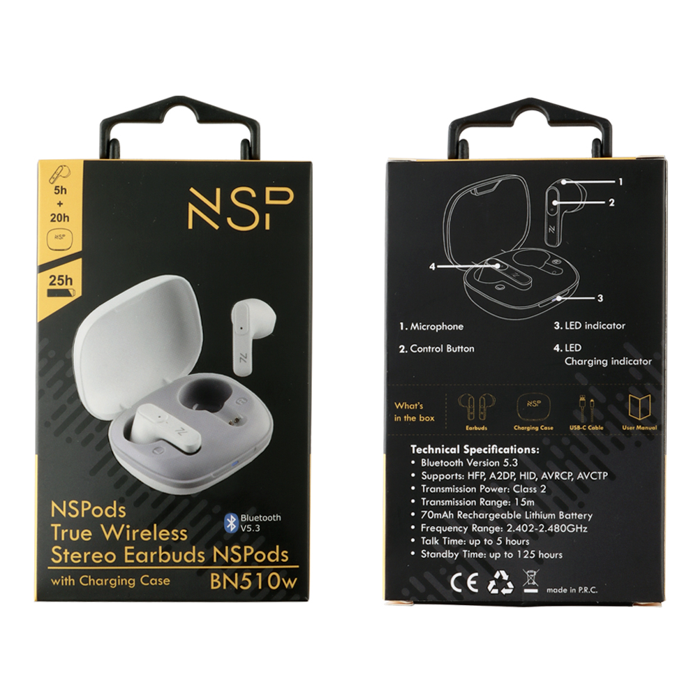 Τα νέα NSP ασύρματα semi in-ear ακουστικά NSPODS BN510W ΜΕ ΘΗΚΗ ΦΟΡΤΙΣΗΣ ΜΕΤΑΦΟΡΑΣ δίνουν άλλον αέρα στην καθημερινότητα σου.