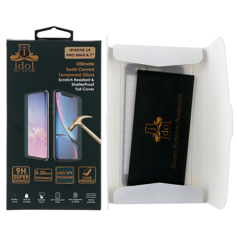 TEMPERED GLASS IPHONE 14 PRO MAX 6.7" 9H 0.30mm PRIVACY ANTISPY SEMI CURVED FULL GLUE BLACK